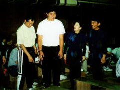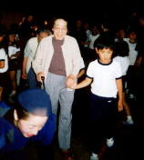 入退場には子どもたちが老人たちと手をつなぎ案内するという 微笑ましいシーンが見られ(左の写真)、ゲームの所では 本気になって子どもと競争する若いお母さんもいたりして まさに地域での三世代が交流する場がありました。 今後、こういう取り上げられかたが増えると良いですね。 |
